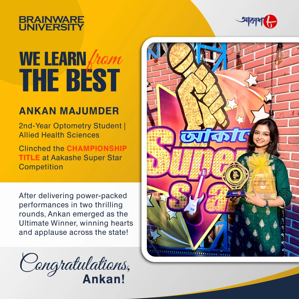 From the classrooms of Allied Health Sciences to the grand stage of Aakashe Super Star Competition (Aakash 8 Channel) — Ankan Majumder, our 2nd-Year Optometry student, has scripted a journey of pure passion and performance!
