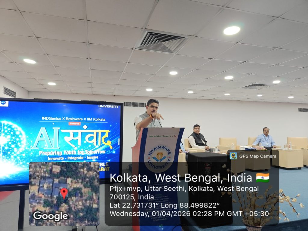 The seminar “AI Sambaad” was successfully conducted on 1st April 2026 at the Auditorium, Building-II, as a collaborative initiative between IndGenius, the Department of CSE (CS & DS), Brainware ACM Student Chapter, and IIM Kolkata. The event aimed to bridge the gap between academic learning and industry exposure while promoting awareness and discussion around Artificial Intelligence.