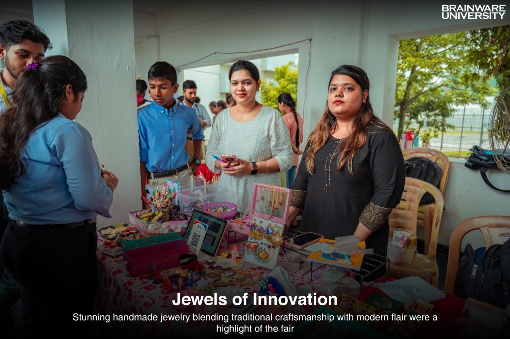 The BrainZHut 1.0: Business Fair hosted by Brainware University’s Department of Management was a grand celebration of creativity and entrepreneurship. Students and alumni showcased their innovative ideas, with stalls featuring everything from handmade jewelry and wellness products to creative artworks and delicious food.