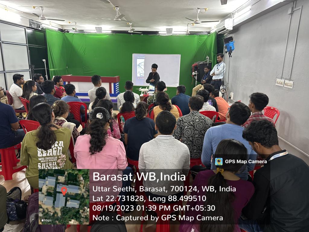 The session was conducted by Mr. Probhat Mahanto, a leading drone pilot from the Bengali film industry with extensive experience in documentary and promotional filmmaking. He shared insights on aerial cinematography, drone operation, and safety techniques in professional film production.