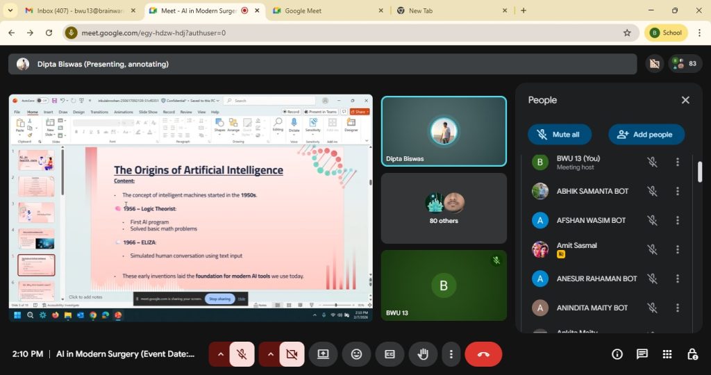 highlighted how digital intelligence is transforming surgical planning, precision, and patient care, fostering greater awareness among participants about emerging technological advancements. Conducted by the Department of Allied Health Sciences, Brainware University, the programme encouraged learners to embrace AI-driven innovation and prepare for the evolving future of healthcare delivery.