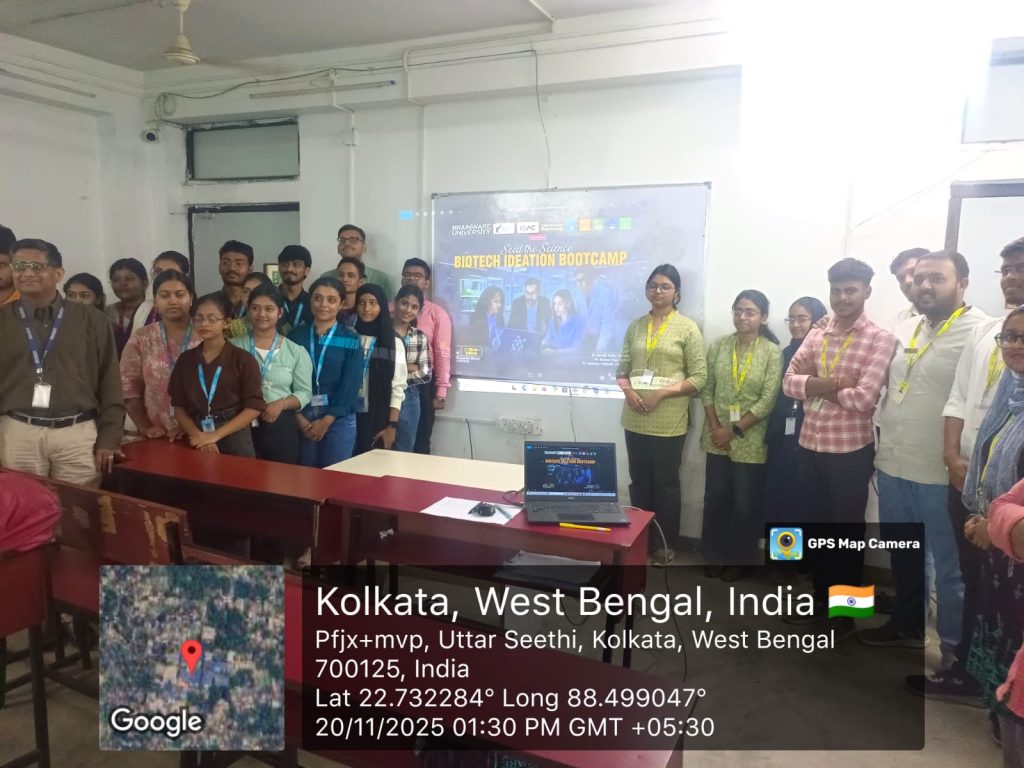 The Department of Biotechnology, Brainware University, organized an Ideation Workshop titled “Seed the Science: Biotech Ideation Boot Camp” on 20 November 2025 from 11 a.m. to 4 p.m. under the coordination of Dr. Sambit Datta and Dr. Anusuya Debnath, with support from Dr. Samrat Paul. The event, held at the university campus, witnessed the participation of 47 undergraduate and postgraduate students.