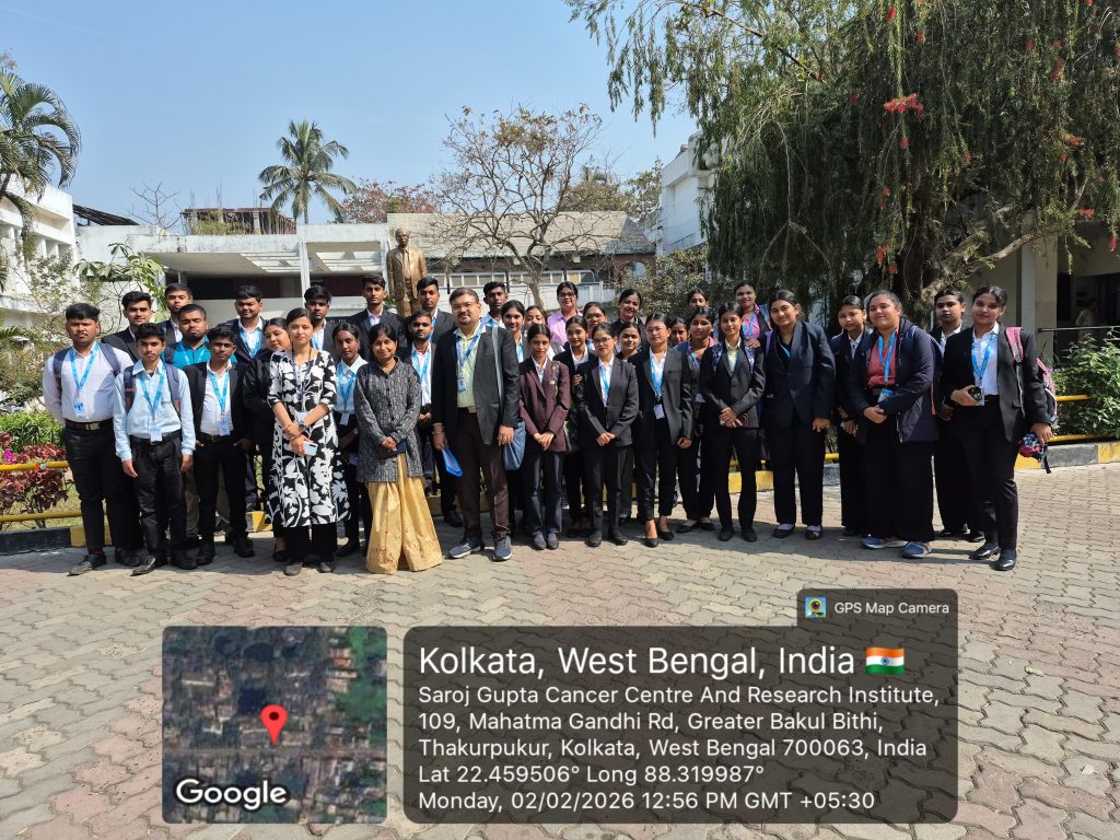 The Department of Hospital Management organized an industry visit to Saroj Gupta Cancer Research Centre, Kolkata, to provide students with exposure to a specialized cancer care institution. The visit aimed to help students understand the functioning of an oncology centre, including the integration of clinical care, research, and hospital administration.