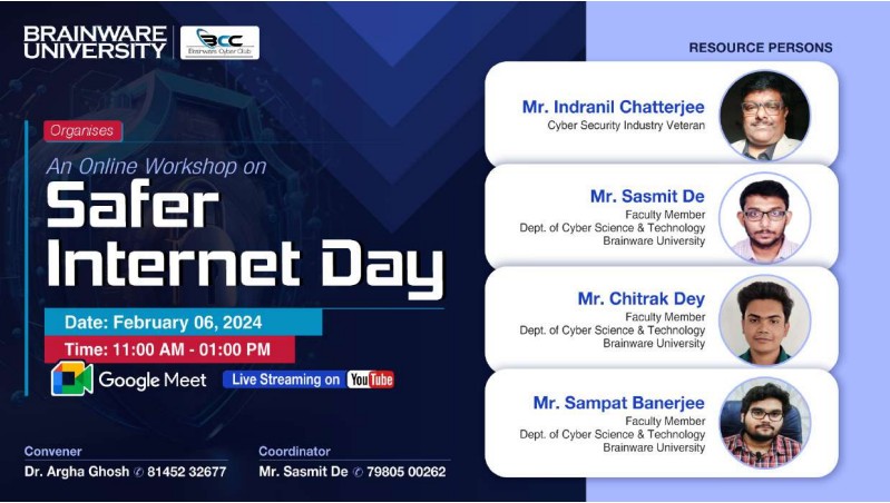 The aim of Safer Internet Day is to encourage people to be more aware of the potential risks and challenges of the online world, including cyberbullying, online harassment, sexting, and online grooming. The day also promotes the positive aspects of the internet, such as the opportunities for creativity, communication, and collaboration that it provides. The main target audience was the students of our University; our main objective is to aware them from the various kind of fraud in INTERNET.