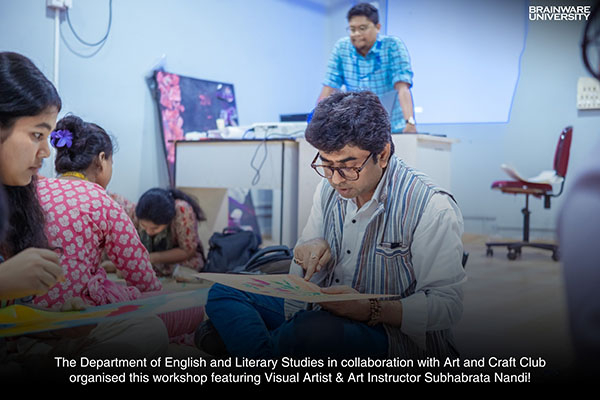 Brainware University’s Department of English and Literary Studies, in collaboration with the Art & Craft Club, hosted a vibrant art workshop with renowned Visual Artist & Art Instructor Subhabrata Nandi!