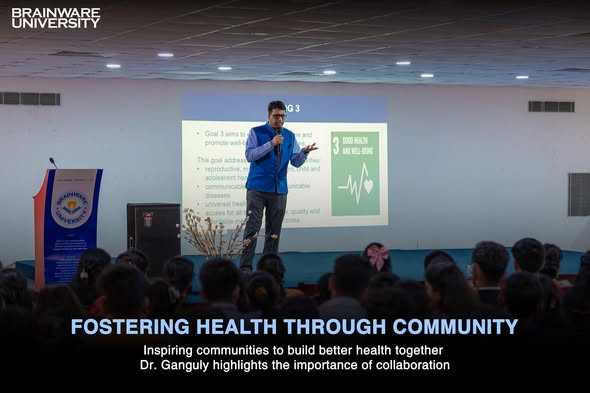 In an enlightening seminar, Sqn. Ldr. Dr. Arnab Ganguly, Deputy Medical Superintendent of Chittaranjan National Cancer Institute, delved into the powerful interplay between medicine and exercise in achieving Sustainable Development Goal 3 – Good Health and Well-being. He emphasised that true health encompasses not just physical, but also mental and social well-being. Dr. Ganguly highlighted how communities play a vital role in fostering healthy habits, where medicine and exercise work together to create a holistic approach to wellness. A thought- provoking session that redefined our understanding of health!