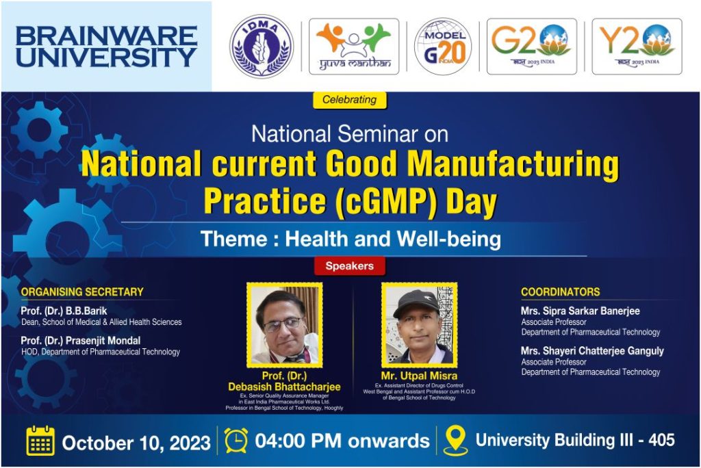 The Department organized an event on “National Current Good Manufacturing Practice” to spread awareness about maintaining quality standards and safety in pharmaceutical manufacturing. The session emphasized the importance of following regulatory norms and ethical practices to ensure product efficacy and consumer safety.