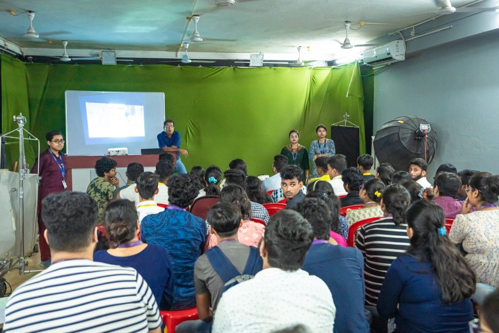 To explore this career option, sports journalist Sayantan Ghosh conducted a workshop on ‘Sports Photography’ for the Multimedia students.