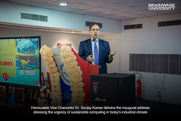 Brainware University proudly hosted the International Conference on Sustainable Computing for Industry (ICSCI 2025), a platform where future-focused minds converged to reimagine the role of computing in building greener, smarter industrial ecosystems. Held in a blended mode, the conference brought together experts, scholars, industry professionals, and students to explore breakthroughs in green algorithms, AI-driven energy optimisation, carbon-aware architectures, and sustainable data processing systems, over the course of two days.