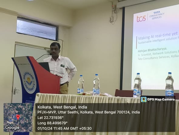 Brainware University proudly hosted a Technical Talk on ‘Sustainable Intelligence Solutions for 6G’, featuring Abhijan Bhattacharyya, Senior Scientist at TCS!
