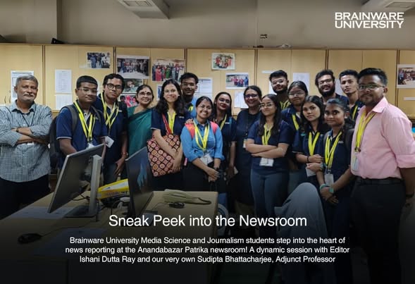 Our Media Science and Journalism students had an unforgettable experience at the Anandabazar Patrika newsroom! From engaging with Editor Ishani Dutta Ray to diving deep into the history of journalism with our own Sudipta Bhattacharjee, they witnessed firsthand the art of news creation. The moment of awe? Seeing the iconic front page that reported Mahatma Gandhi’s passing.