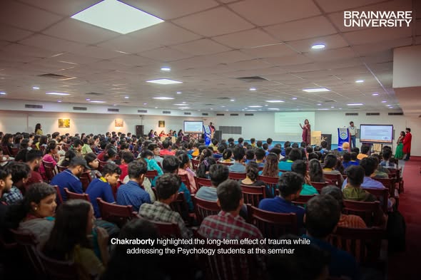 Brainware University had the honour of hosting Clinical Psychologist Aparajita Chakraborty for an eye-opening seminar titled ‘Wounds We Carry’. From personal relationships to the deep scars left by historic disasters, students delved into the complexities of generational trauma.