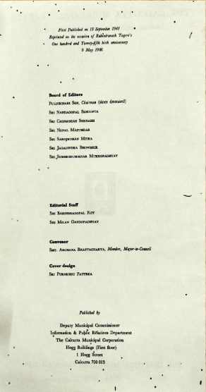 This is a special supplement on Rabindranath Tagore published in The Calcutta Municipal Gazette in 1986. This was first published in 1941 and reprinted on the occasion of Rabindranath Tagore’s 125th birth anniversary. Presently reprint versions have been sold only by Govt. of India.